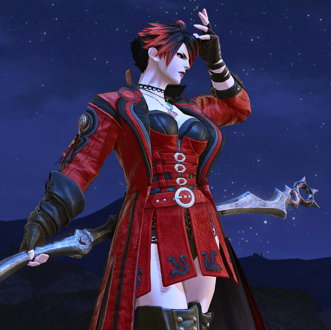By Crimson Round: A Red Magic practitioner, she uses a modified gunblade to wield her magic, combining the Balance with aether-charged cartridges for both short and long-range engagements.