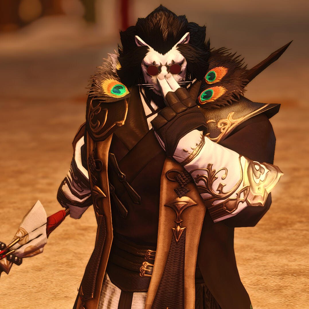 Left at the shores of the Ruby Price as a cub, the hrothgar who would eventually make his name as the Black Lion of Doma was adopted by a kindly couple; the priest Shilong and the culinarian Yeohchun. When the Empire set its sights on the kingdom, the Li family set about freeing their nation, no matter the cost.Raised as an agent of the Doman Resistance Front, Songfeng acted as saboteur and messenger, feeding Imperial movements to the Resistance. Over time, his actions earned him an apprenticeship under a samurai, and upon Doma's liberation, an esteemed rank amongst its heroes.Gifted with a rural charm and schooled in proper etiquette, Songfeng adapted to the life of peacetime as a trade diplomat, travelling the world over to speak on behalf of the Dragon Throne.