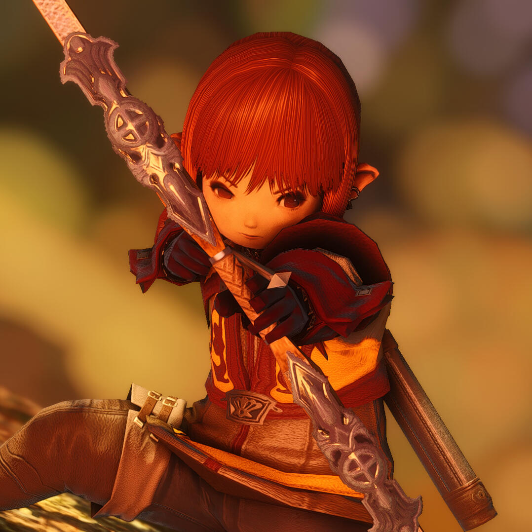 Born into a family of wardens of the Shroud, Chichiro grew up fervently revering the Elementals and swore to uphold their will as the wardens before her. However, a fated encounter within the Palace of the Dead gave pause to this devotion as Chichi was saved by the duskwight elezen that remained within old Gelmorra - those she was taught to abhor and defend Gridania from.As the Garlean Empire crawled its way across the land and the elementals fading in power, she was one of the first to be made Captain of the newly instated Order of the Twin Adder. With bow in hand, Chichiro vowed to double her efforts to protect and nurture the Twelveswood, including her duskwight and sylph neighbours.